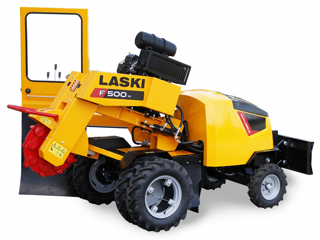 Fréza Laski F 500H/27 s hydraulickým ovládáním je určena k frézování dřevěných pařezů, tj. k odfrézování nadzemní a podzemní části. Maximální průměr pařezu je bez omezení. Hydraulické ovládání výrazně usnadňuje pojezd i práci se strojem. Pracovník je ušetřen veškeré fyzické námaze. Ochranný štít umožňuje kontrolu frézování z bezprostřední blízkosti s maximální bezpečností.