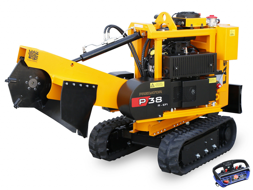 Fréza Laski P 38 R - EFI na pásovém podvozku s dálkovým ovládáním a motorem se vstřikováním paliva je určena k frézování dřevěných pařezů, tj. k odfrézování nadzemní a podzemní části. Maximální průměr pařezu je bez omezení. Pásový podvozek zajišťuje stroji vysokou průchodnost terénem.