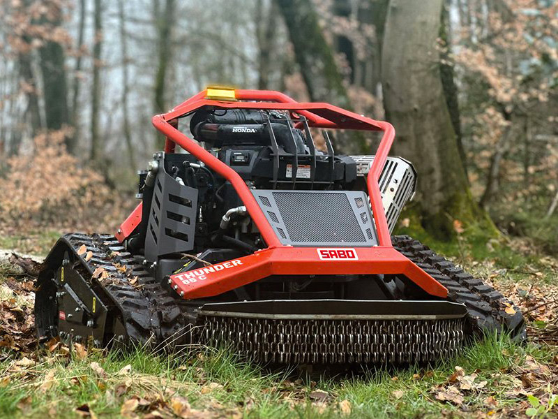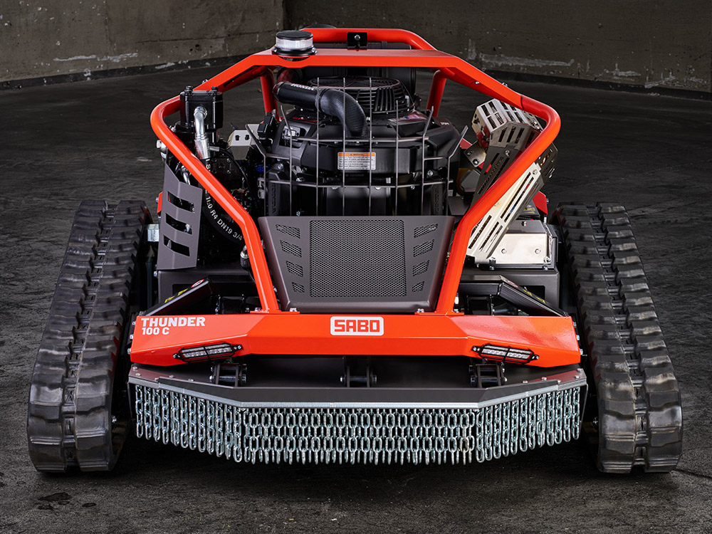 Dálkově řízené svahové sekačky Sabo Thunder kombinují výkon motoru Honda iGXV 700 EFI s maximální stabilitou na svazích až do 65°. Odolné ocelové sečení Hardox 400 a patentovaný systém pásů zajišťují spolehlivý chod i v extrémních podmínkách. Díky kompaktním rozměrům a intuitivnímu dálkovému ovládání je práce efektivní, bezpečná a přesná.