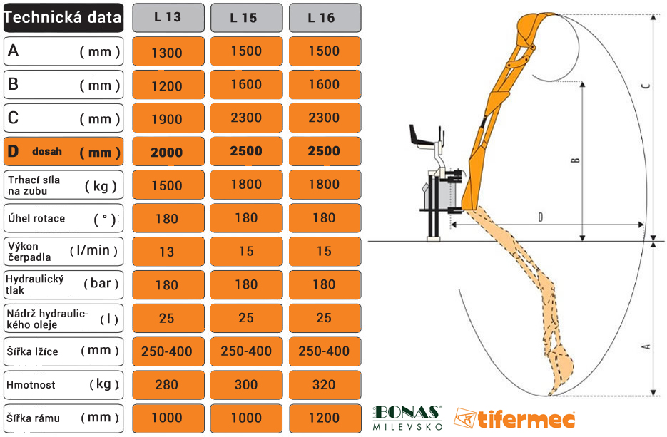 Robustní zadní podkop Tifermec série GreenLine L s ramenem posuvným po rámu s hydraulickým zámkem a otočným o 180°. Nezávislé okruhy pro boční sklopné hydraulické stabilizátory se zámkem, dvojitý hydraulický píst otáčení výložníku, rozvaděč s přetlakovými ventily, bezpečnostní výztuha se stabilizátory do 3-bodového závěsu. Vyroben z kvalitních materiálů (Fe 510), zapoudřené broušené čepy ve všech kloubech.